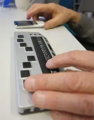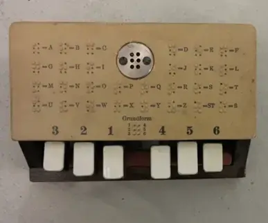 På begge maskinene kom en og en bokstav opp i ett lite område der seks avrundede metallstifter danner cellene i punktskriftbokstavene. Bokstavene avleses med at man holder en finger ned for å lese det som skrives.