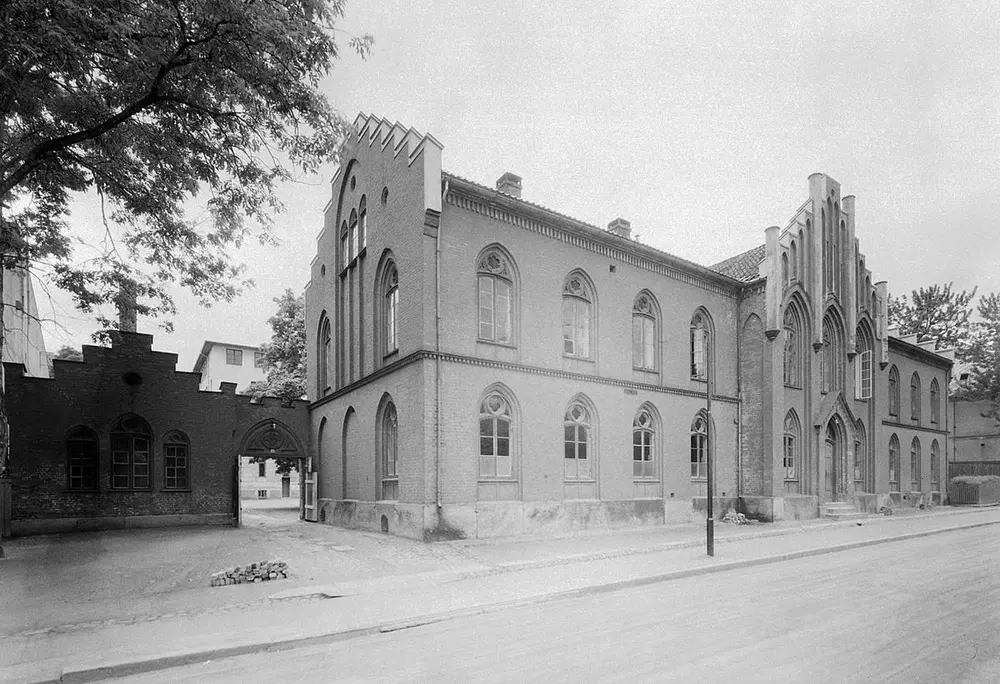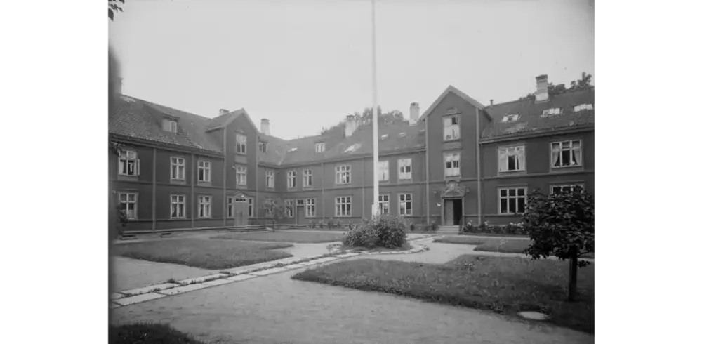Den nye skolen var en vakker rød bygning i nygotisk stil. I første etasje var det fire klasserom, et oppholdsrom som også fungerte som spisesal og verksted, pluss en leilighet til husøkonomen. Husøkonomen hadde ansvaret for den daglige driften av skolen, og bestyreren hadde ansvaret for undervisningen. Bestyreren hadde egen leilighet i andre etasje, hvor det også fantes kontor, bibliotek, sykerom, en sal til gudstjenester og konfirmasjoner, samt sovesal til jentene. Guttene sov på loftet. Bygget hadde to sidefløyer med kjøkken, vaskerom, drengestue og stall m.m.