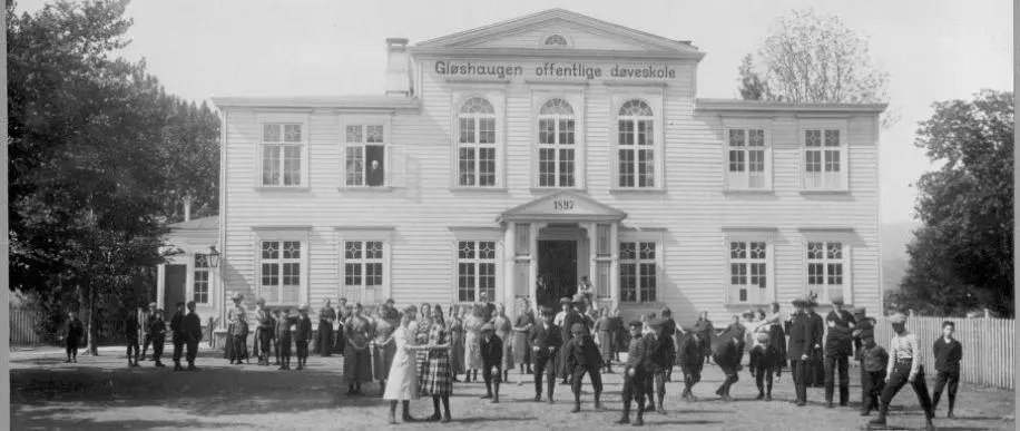 Døveskolen i Bergen ble startet i 1850 av teologen Lars August Gleditsch, etter modell av Balchens skole i Oslo. Han underviste til å begynne med 9 elever, men etter hvert gikk mellom 40 og 50 jenter og gutter på døveskolen. Elevene som ikke hadde foreldrene sine i Bergen, bodde i fosterhjem. Det var ikke noe internat på skolen. I fosterhjemmene skulle elevene hjelpe til og lære seg et håndverk. Derfor begynte ikke elevene på døveskolen før i 10-års alderen. Jentene hjalp til med husarbeidet, og guttene i skomaker- eller snekkerverkstedet i de hjemmene de bodde. Elevene gikk på skolen i seks år. Femte og sjette klasse ble undervist sammen.