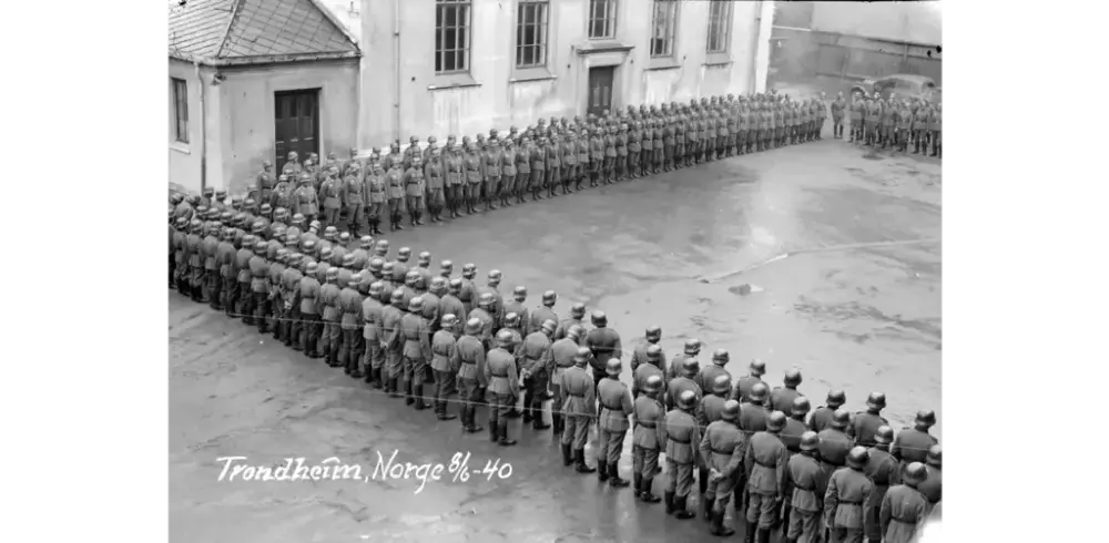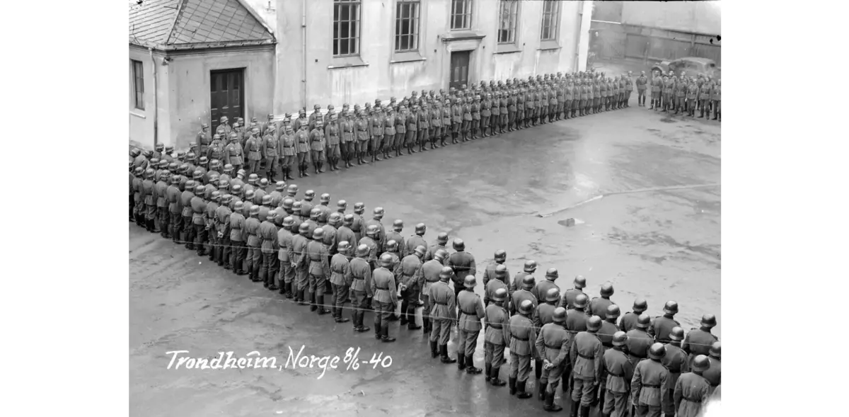 Tysk oppstilling ved Kalskinnet skole i 1940