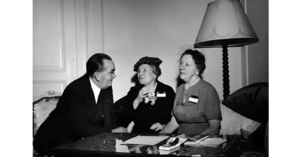 Døvblinde Helen Keller på besøk i Norge, her sammen med Polly Thomson og Conrad Bonnevie- Svendsen